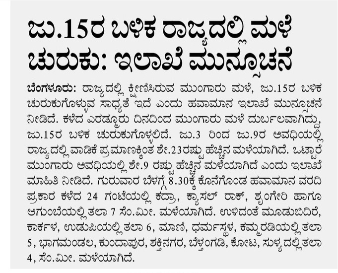 Rains to intensify in the state after 15th: Department forecast