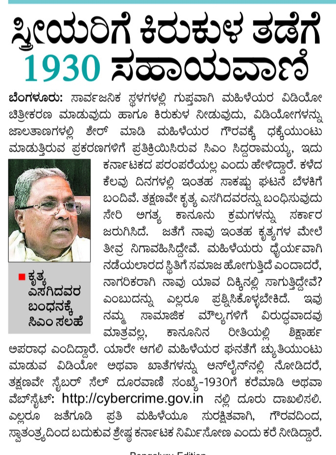 1930 helpline to prevent harassment of women