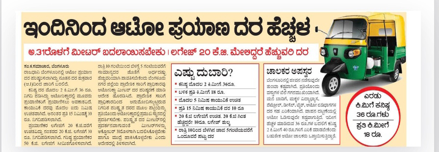 Auto fare hike from today
