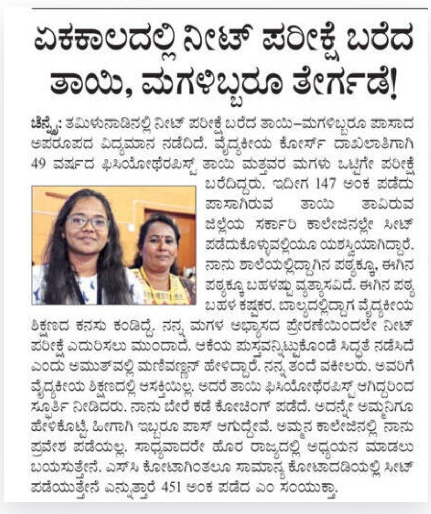 Mother and daughter who wrote NEET exam at the same time pass!