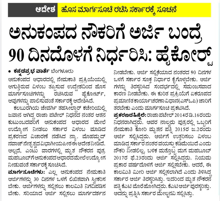 High Court guidelines for compassionate posts – decide within 90 days if application is received