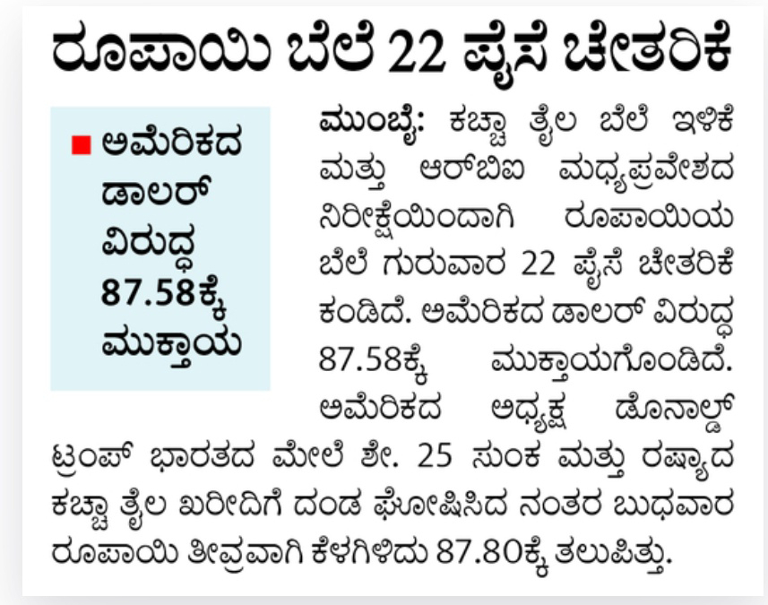 Rupee price recovers by 22 paise