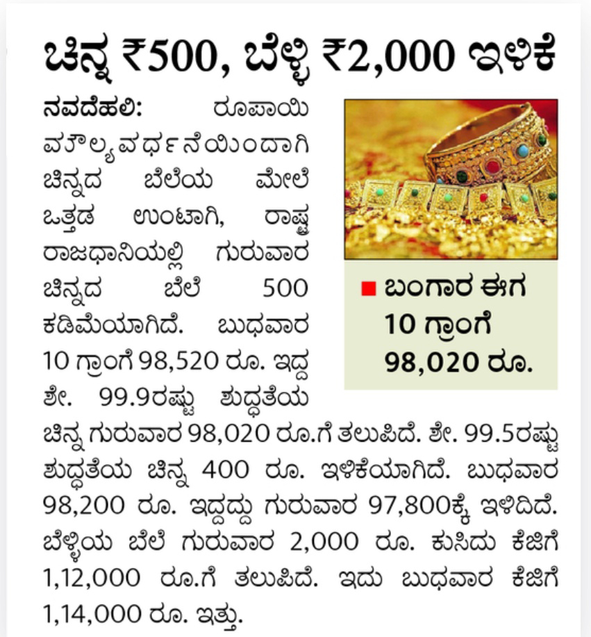 Gold down by ₹500, silver by ₹2000