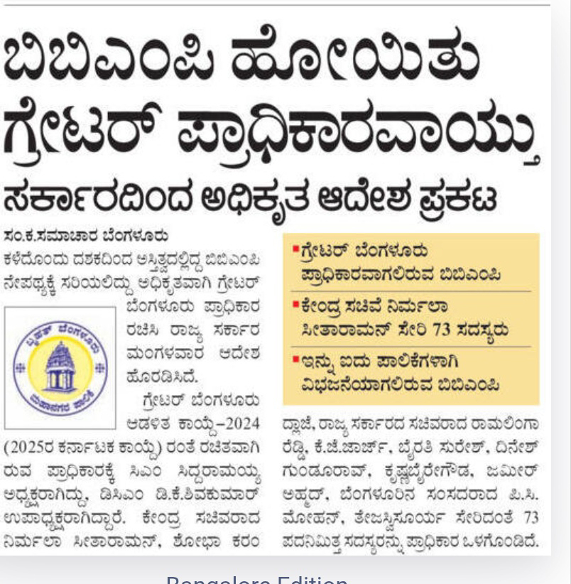 BBMP gone, Greater Bangalore became
