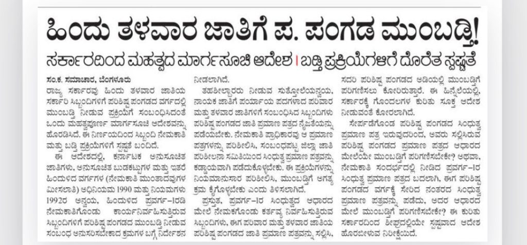Hindu Talawara caste gets promotion in P.T.!