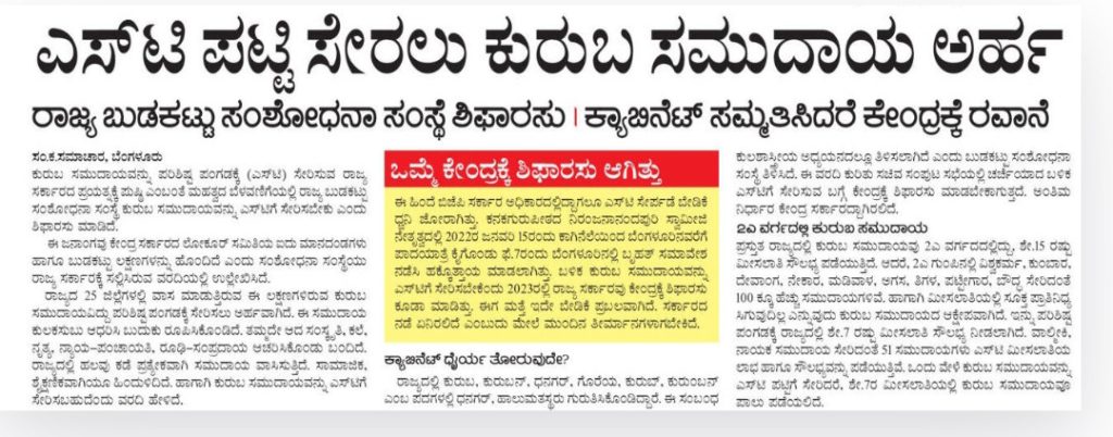 Kuruba community eligible to join ST list