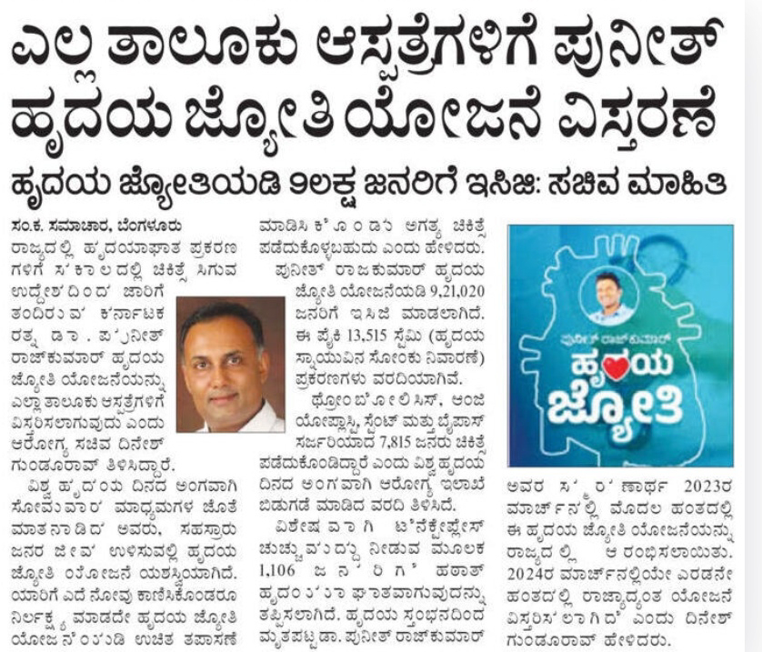 Punit Hridaya Jyoti scheme extended to all taluk hospitals