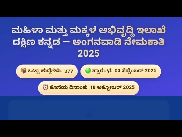 Here is a clear and structured summary of the Dakshina Kannada Anganwadi Recruitment 2025 notification.