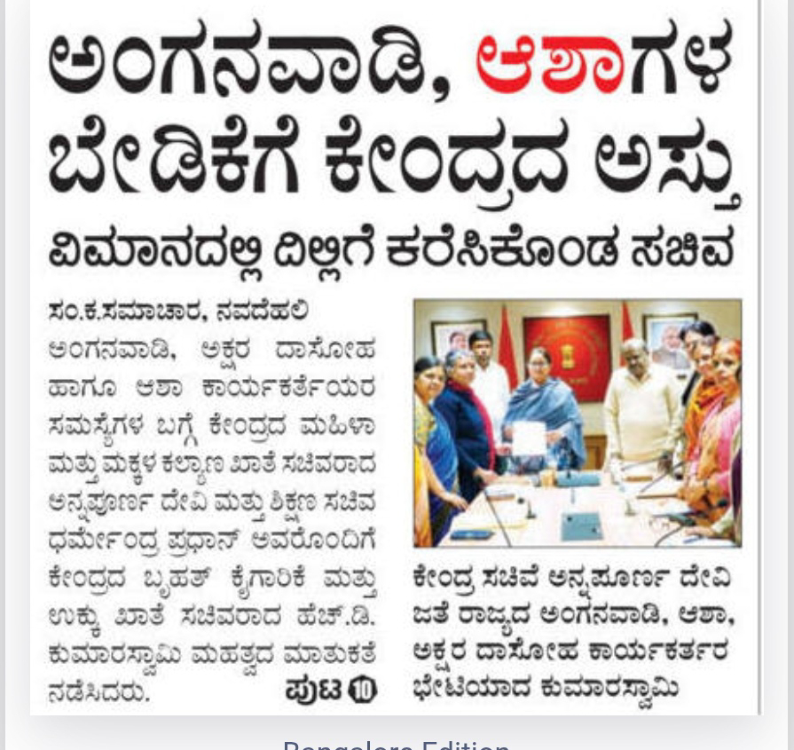 Center’s response to the demands of Anganwadi, ASHA, hot meal workers