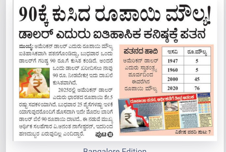 Rupee value drops to 90!-Falls to historic minimum wage against dollar