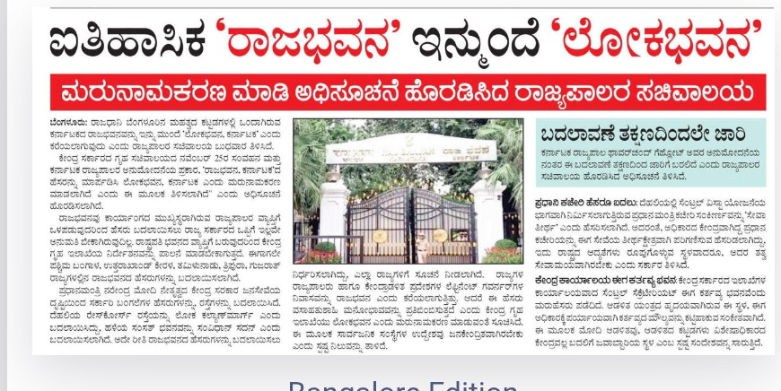 Historic Raj Bhavan will now be “Lok Bhavan”