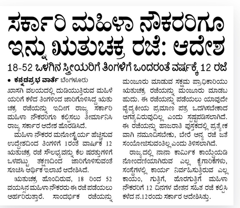Menstrual leave for women government employees