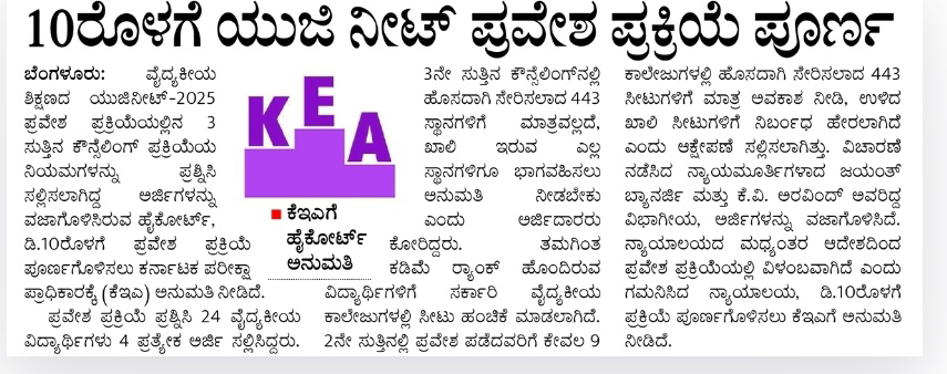 UG NEET admission process to be completed by 10