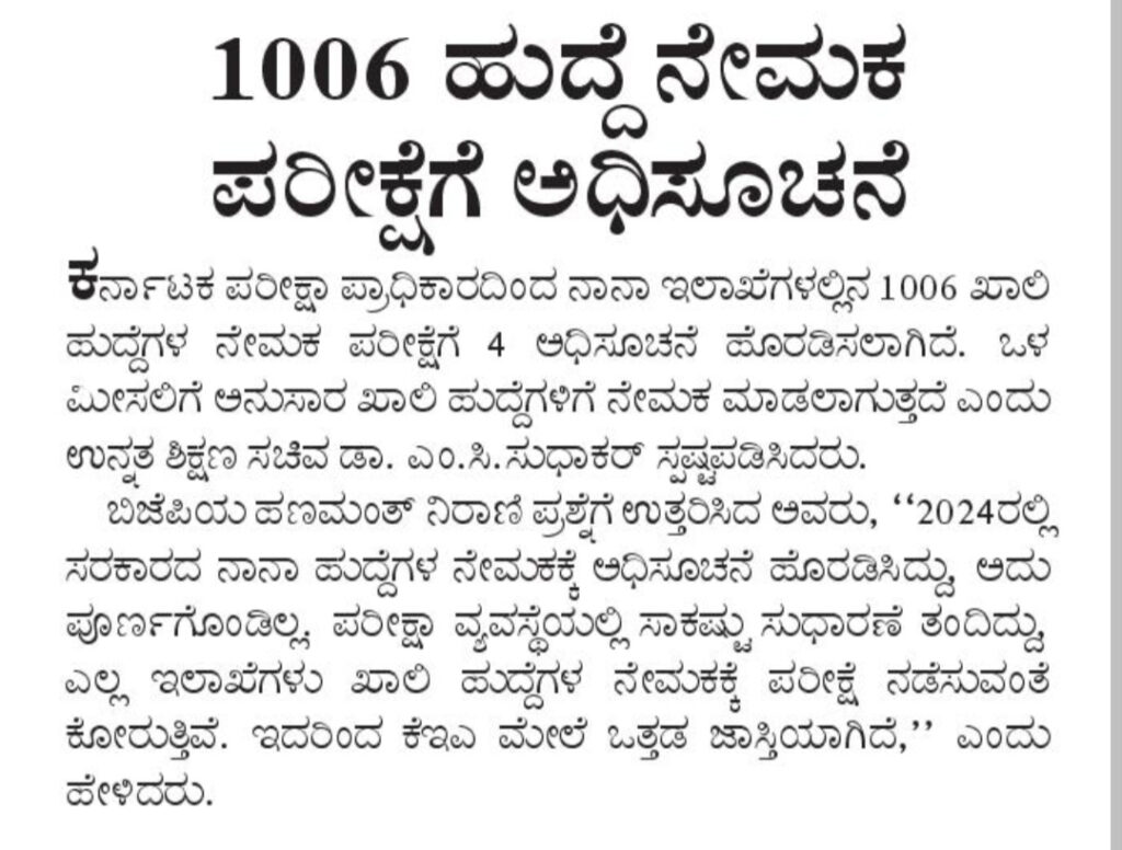 Notification for 1006 post recruitment exam