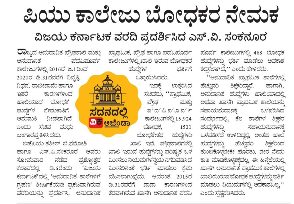 PU college lecturers to be appointed
