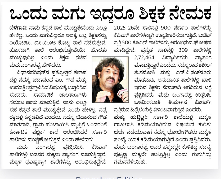 Kannada school will not be closed for KPS: Madhu