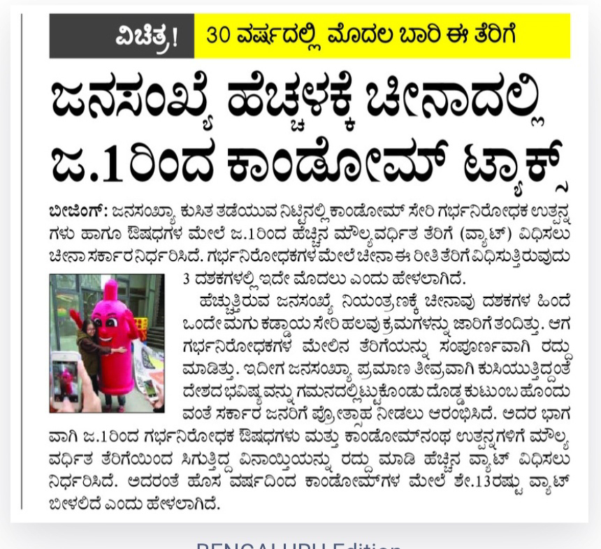 Population increase Condom tax in China from January 1