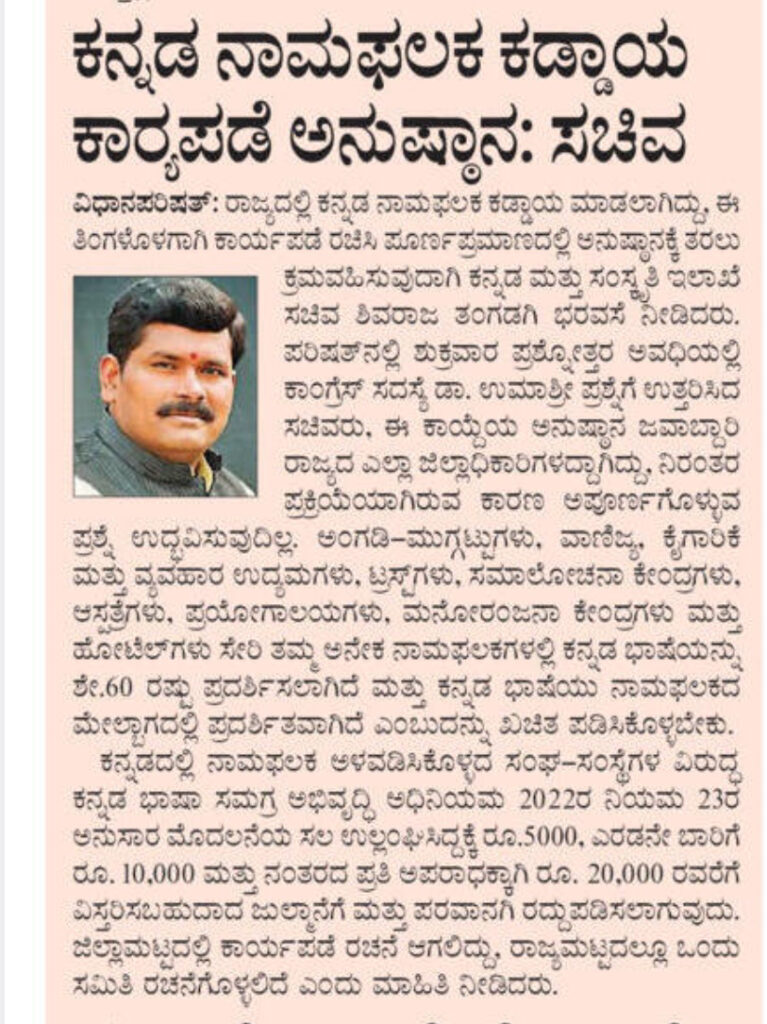Kannada nameplate mandatory task force implemented