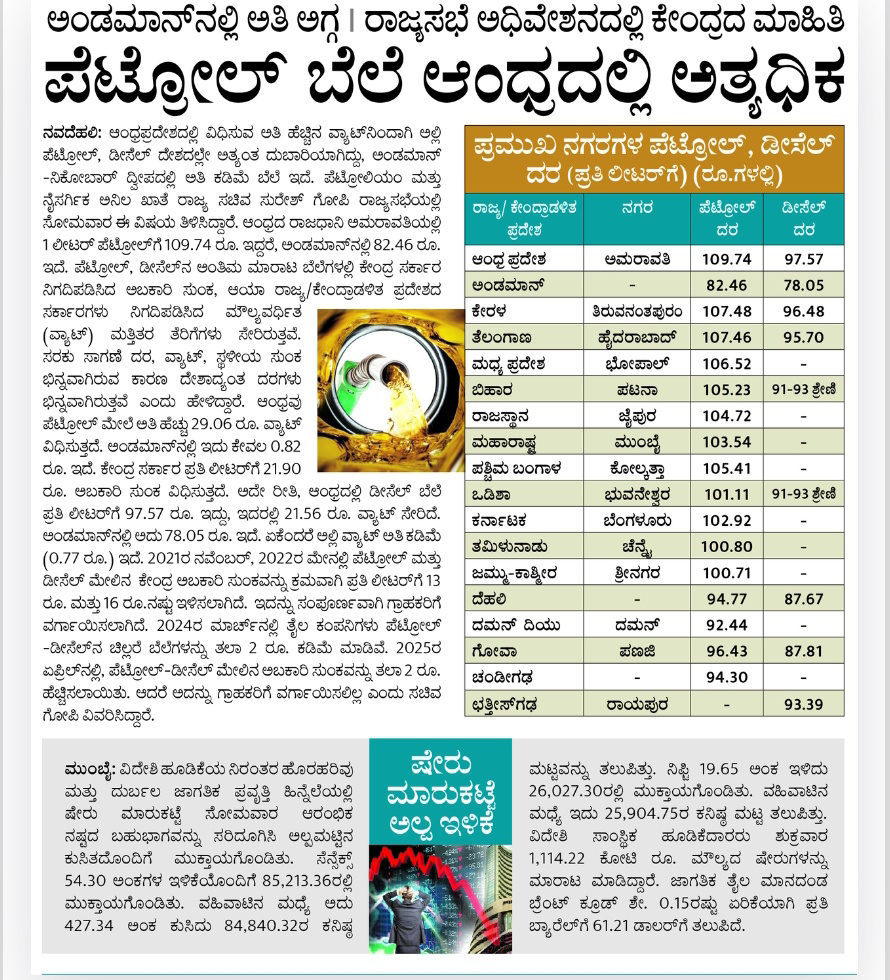 Petrol price highest in Andhra Pradesh