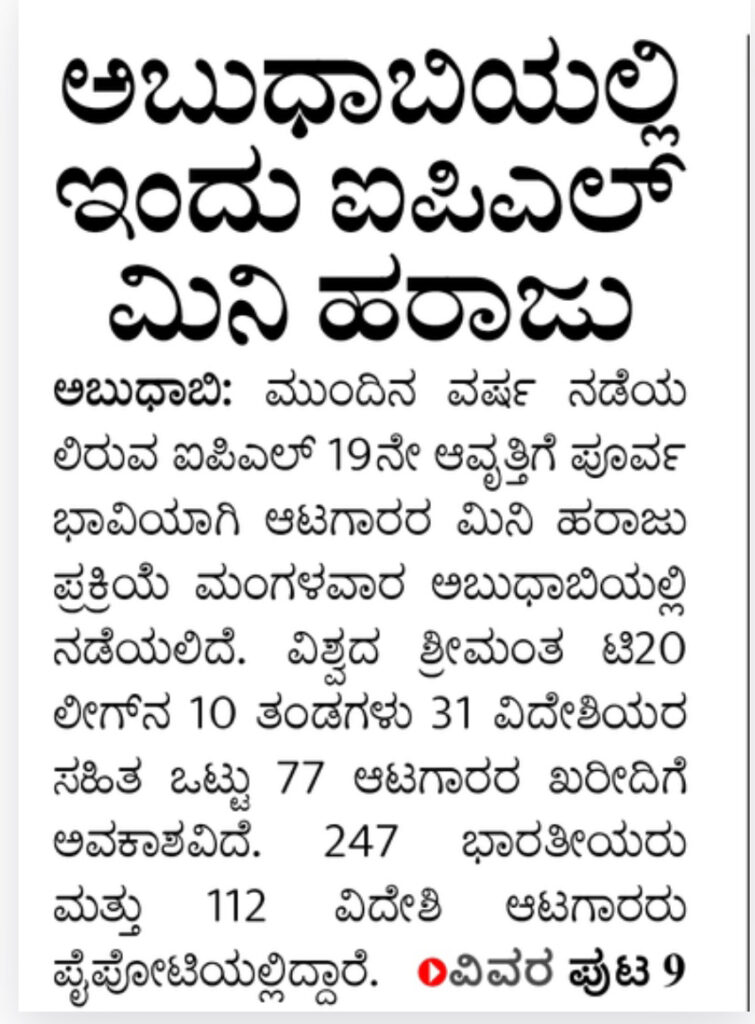 IPL mini auction in Abu Dhabi today