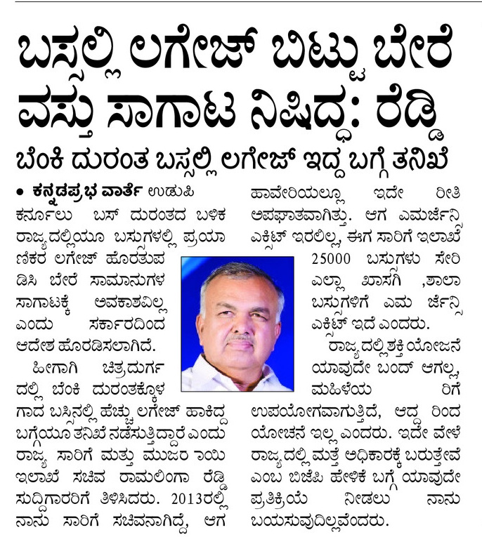 Carrying of items other than luggage prohibited in buses: Transport Minister