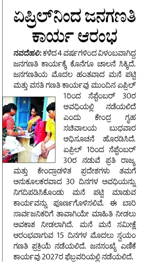 · Census work to begin from April.