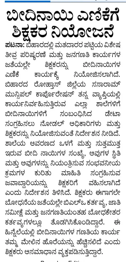 · Teachers assigned to count stray dogs (unusual government directive).