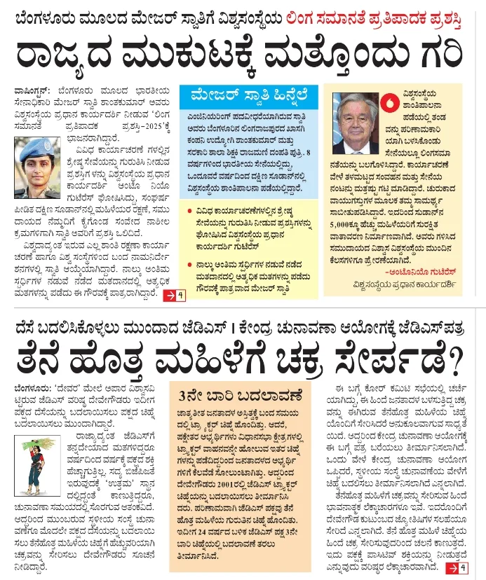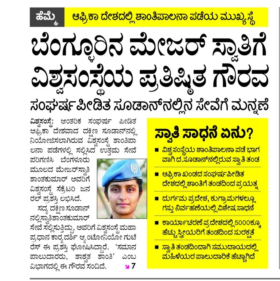Prestigious UN honor for Bengaluru’s Major Swathi