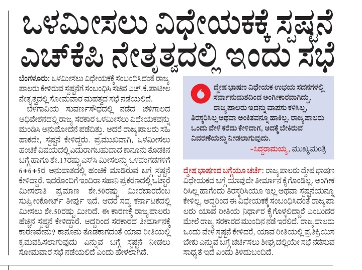 Clarification on Internal Reservation Bill, HKP-led meeting today