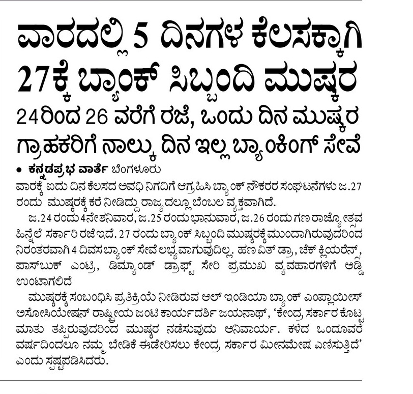 Bank staff strike on 27th for 5-day work week