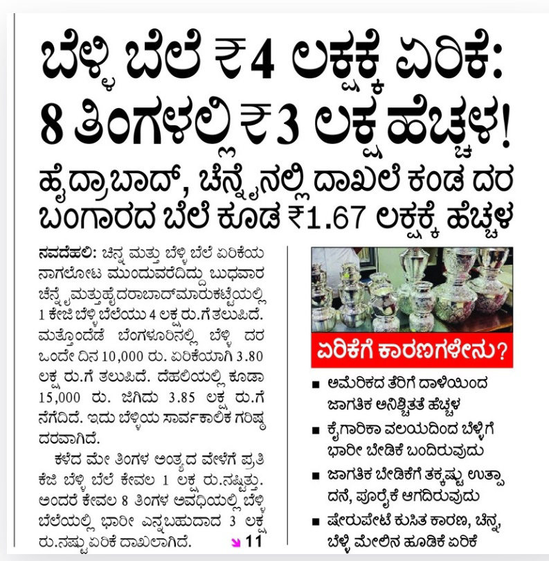 Silver price rises to 4 lakhs: Gold rises to 1.67 lakhs
