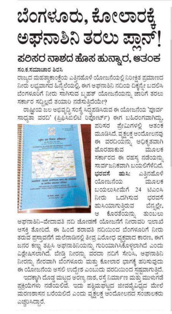 Effort plan to bring Aghanashini to Bengaluru, Kolar!