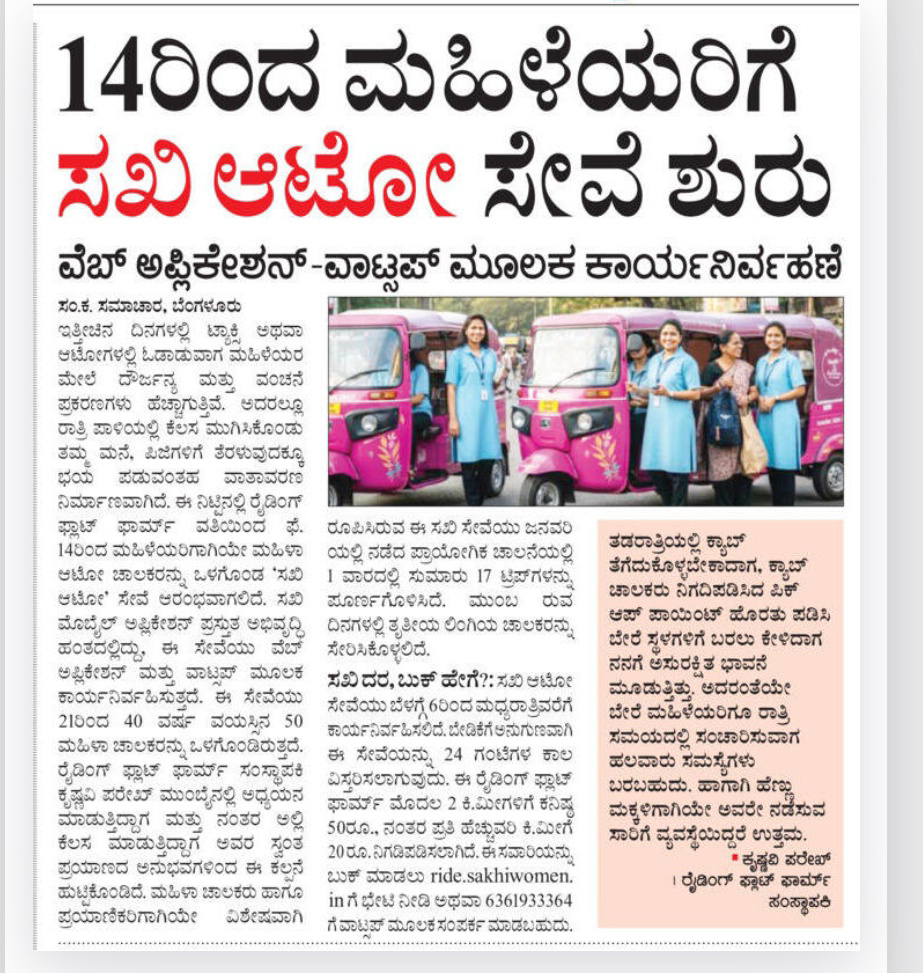 Sakhi auto service for women starts from 14