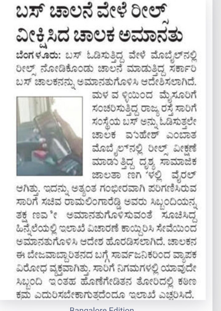 Viewing reels while driving buses, driver suspended
