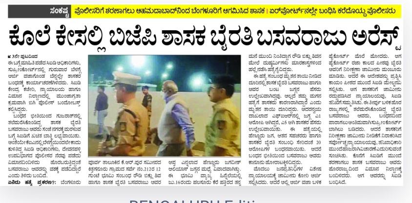 · BJP MLA Bhairati Basavaraj arrested in murder case (result covers UP MLA Brij Bhushan Rajput, not this case)