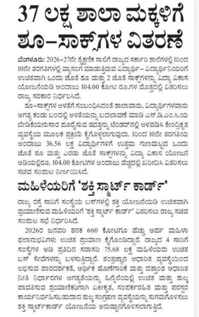 · Shakti Smart Card for Free Travel: Confirmed. Cabinet approved Feb 12, 2026. Smart cards replace ID card verification to fix data errors.