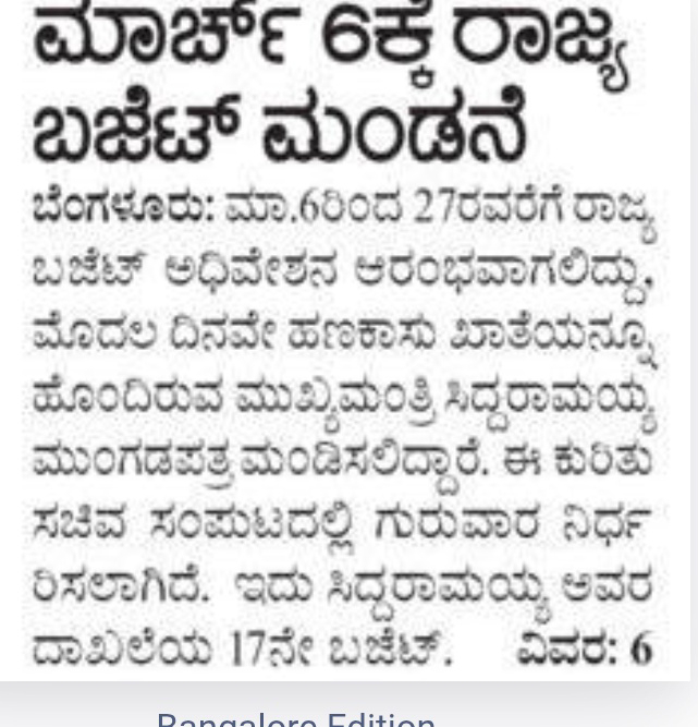 · State budget on March 6: Confirmed. Karnataka CM Siddaramaiah to present on Mar 6, 2026.