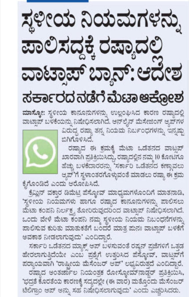 · WhatsApp banned in Russia: Confirmed. Blocked for refusing local laws; restoration possible if Meta complies.