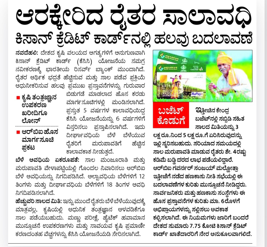 · Farmers’ loan tenure increased: Confirmed. RBI extended KCC tenure to 6 years; draft guidelines open for comment until Mar 6.
