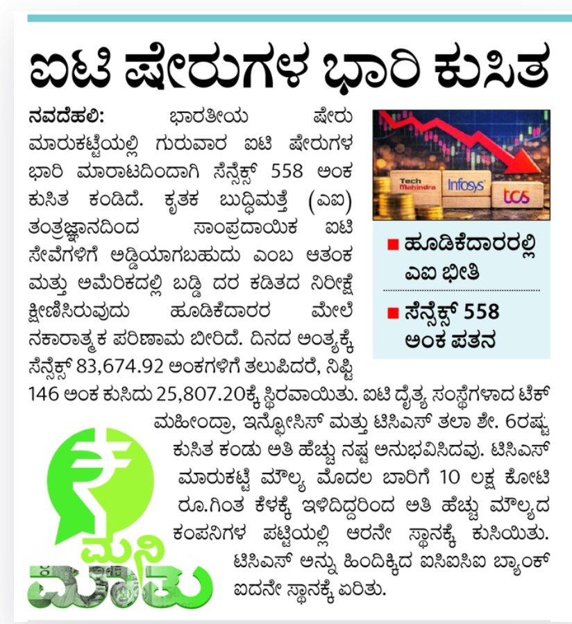 · Huge drop in IT stocks: Confirmed. Driven by AI disruption fears (Feb 12). Infosys ADR -5%, Wipro -4.5%.