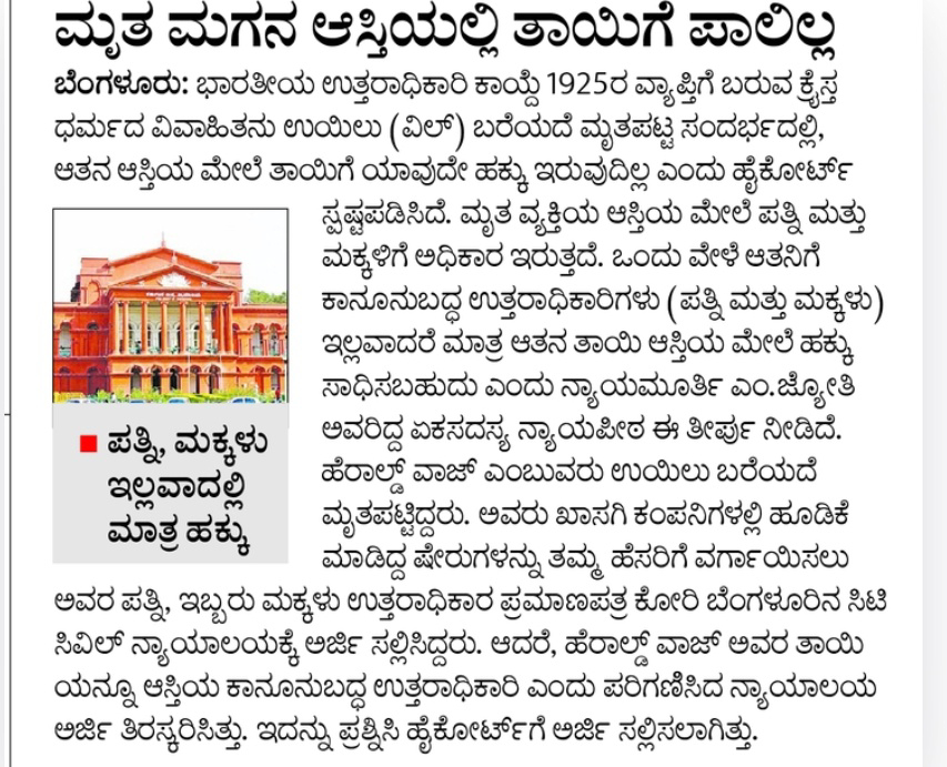 Mother has no share in deceased son’s property: Court