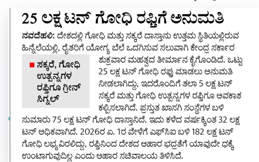 25 lakh tonnes of wheat export allowed