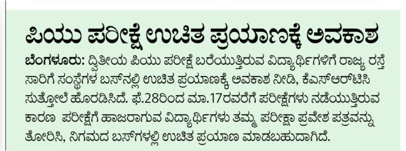 Free travel for PU exams