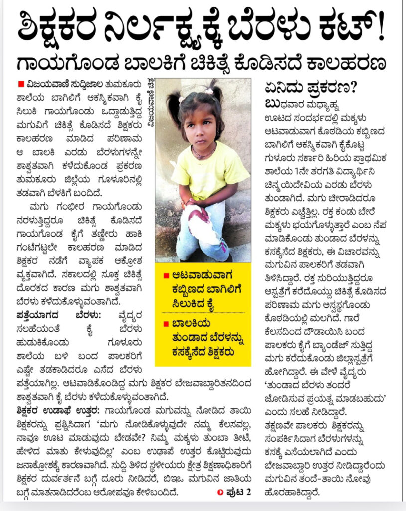 Amputation of fingers due to teacher negligence!