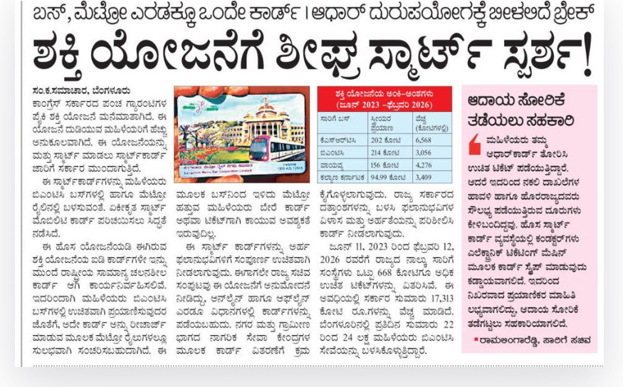 Smart card soon for Shakti Yojana