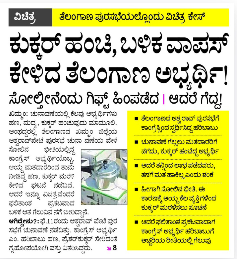 Telangana candidate who shared a cooker and asked for it back