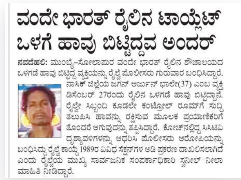 Man who left a snake in the toilet of the only Bharat train