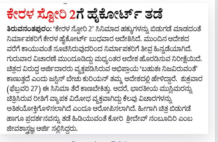 High Court stays Kerala Story 2