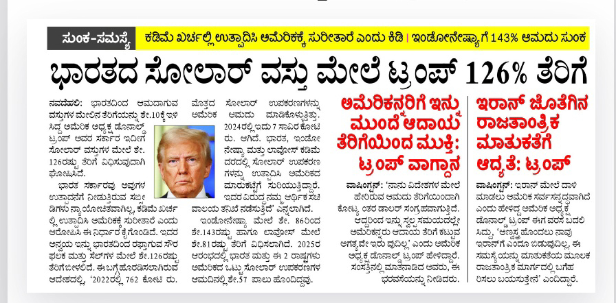 Trump tax shock to India again – 126% tax on solar products
