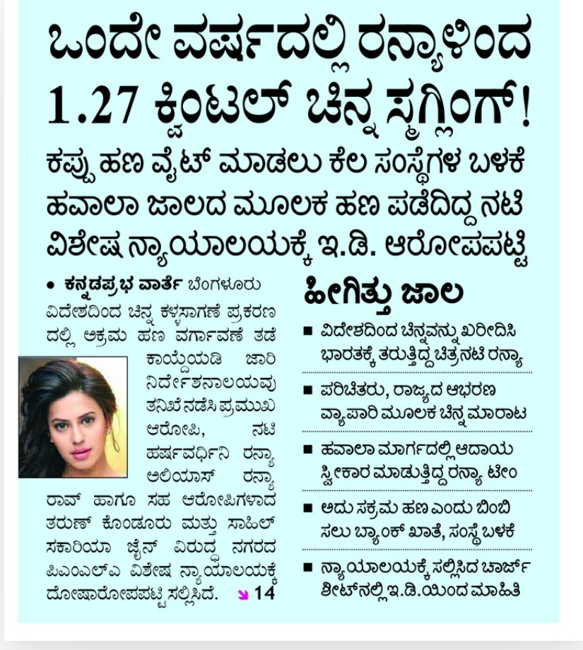 Ranya smuggled 1.27 quintals of gold in a single year
